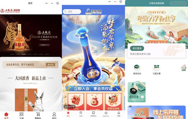 在i茅台成立的同年9月,“五粮液缘定晶生平台”升级为“五粮液新零售平台”。与i茅台类似,五粮液新零售平台同样是集渠道管理、传播阵地、供销平台三大功能于一身的“全能”平台;洋河股份的自建电商平台从“洋河1号”配送酒行客户端到“宅优购”再到洋河精选,走完了从简单的配送到后来的合作开发再到最后的自建全过程;除此之外,更多酒企围绕微信小程序搭建了自家的线上商城、会员中心……