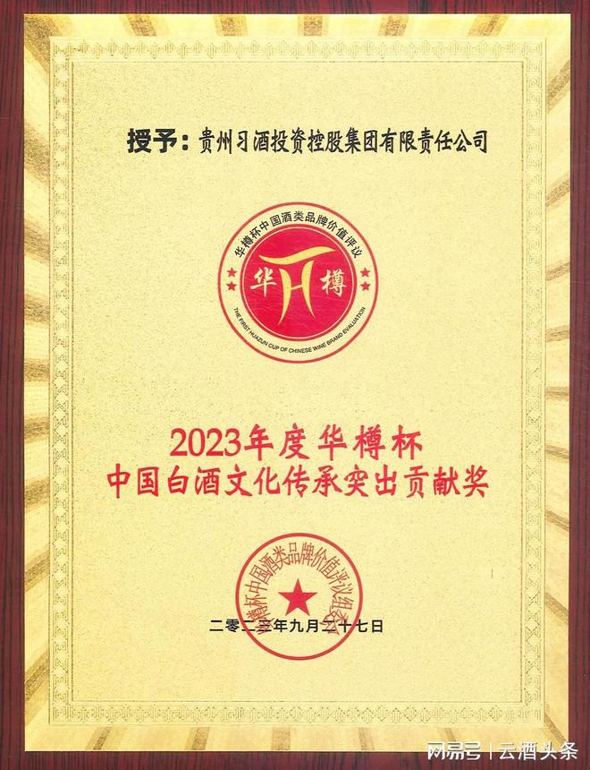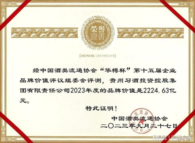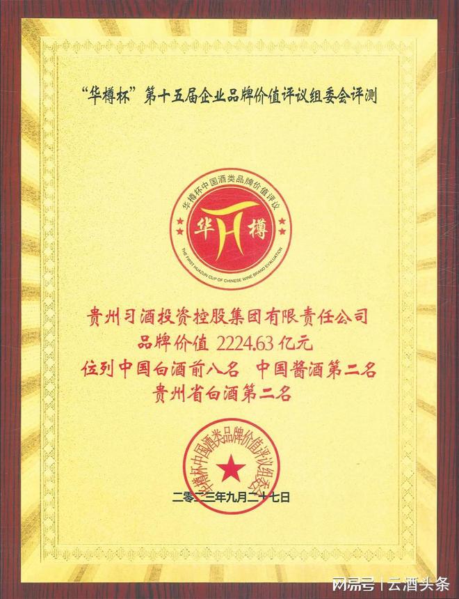 9月27日,中国酒类流通协会在北京国家会议中心发布《华樽杯第十五届中国酒类品牌价值200研究报告》。贵州习酒以2224.63亿元位列中国白酒前八名、中国酱酒第二名、贵州省白酒第二名,品牌价值再创新高。