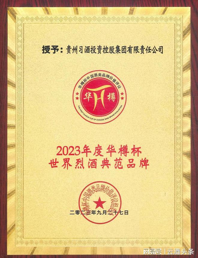 在如此优异的品牌加持下,习酒也斩获诸多荣誉。贵州习酒荣获“2023年度华樽杯世界烈酒典范品牌”“2023年度华樽杯中国白酒文化传承突出贡献奖”等;君品习酒荣获“2023年度华樽杯世界高端烈酒十大优胜品牌”;习酒·窖藏1988荣获“2023年度华樽杯中国酱香型白酒领导品牌”。