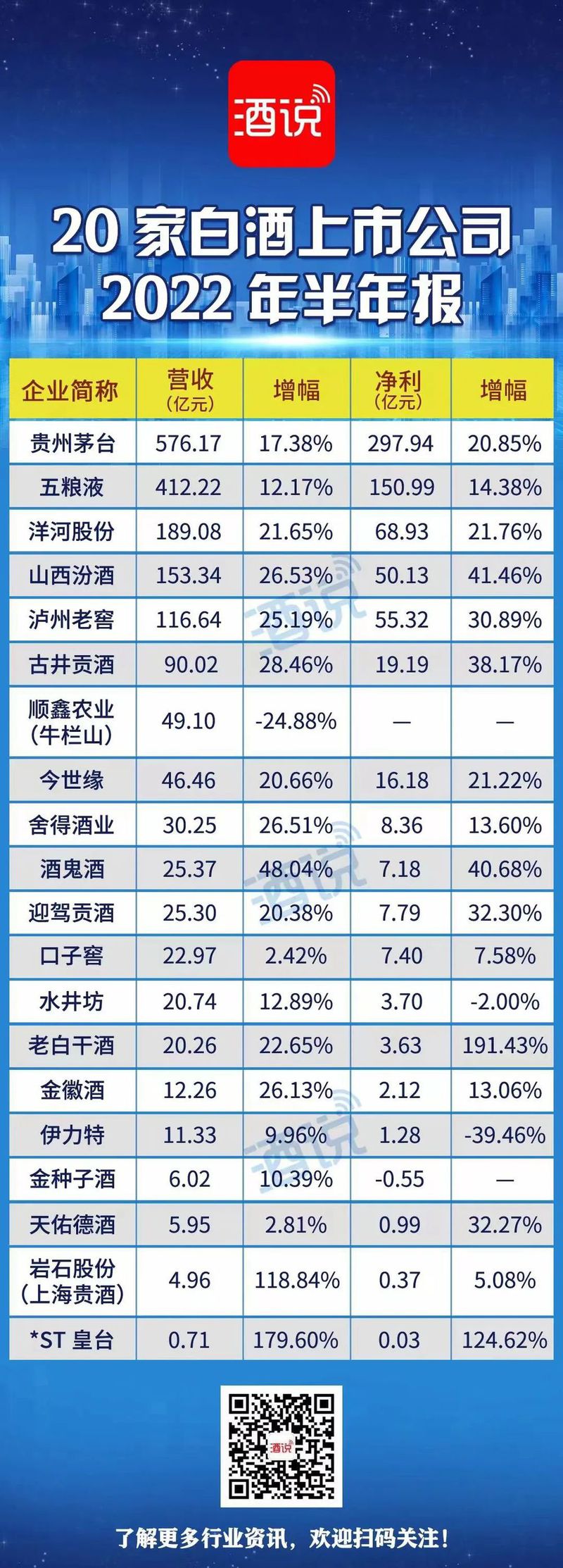在宏观经济“稳增长”和稳住经济大盘的发展大背景下,尽管受疫情反复、经济承压等不利因素的影响,白酒上市酒企的半年报业绩韧性彰显,以稳中向好的发展态势,提振行业信心。