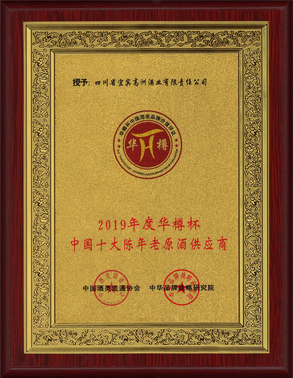 2019-公司获2019年度华樽杯中国十大陈年老原酒供应商