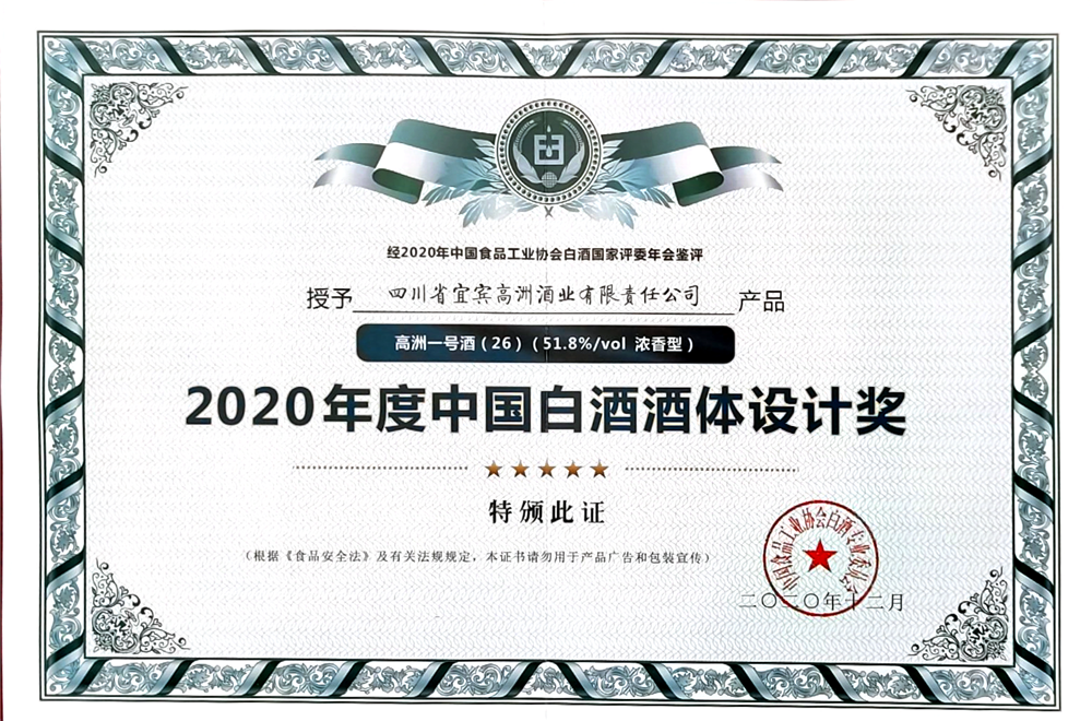 2020-精品高洲1号(26)获2020年度中国白酒酒体设计奖