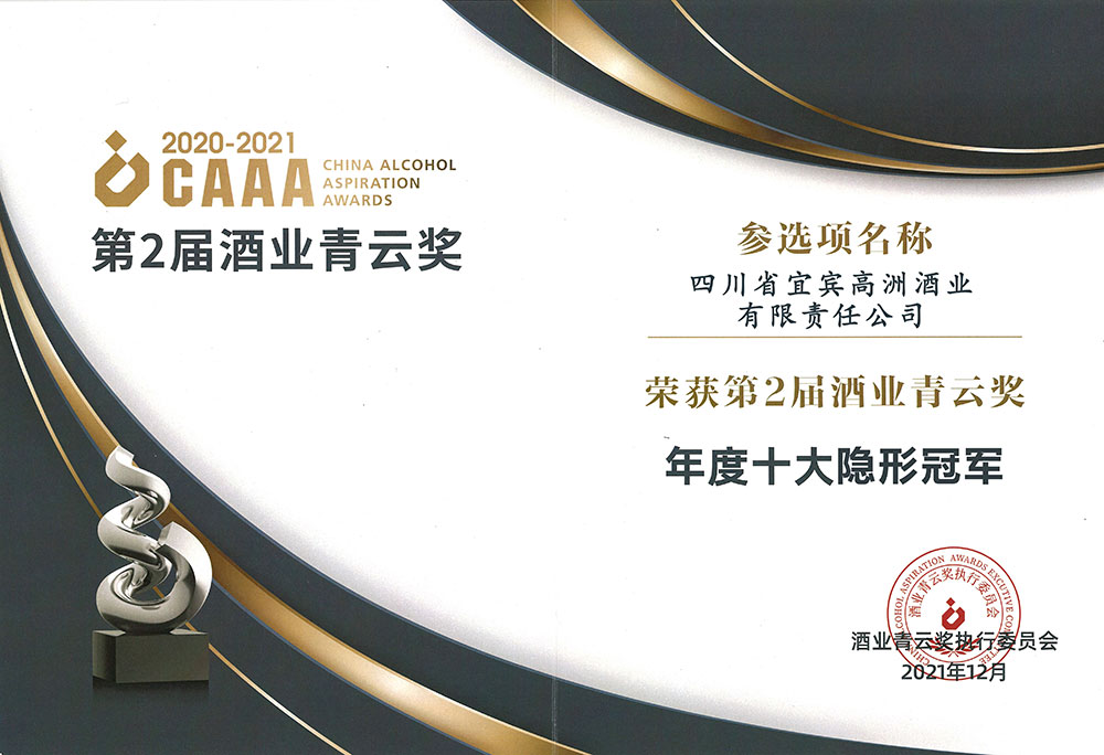 2021-高洲酒业获第2届酒业青云奖年度十大隐形冠军