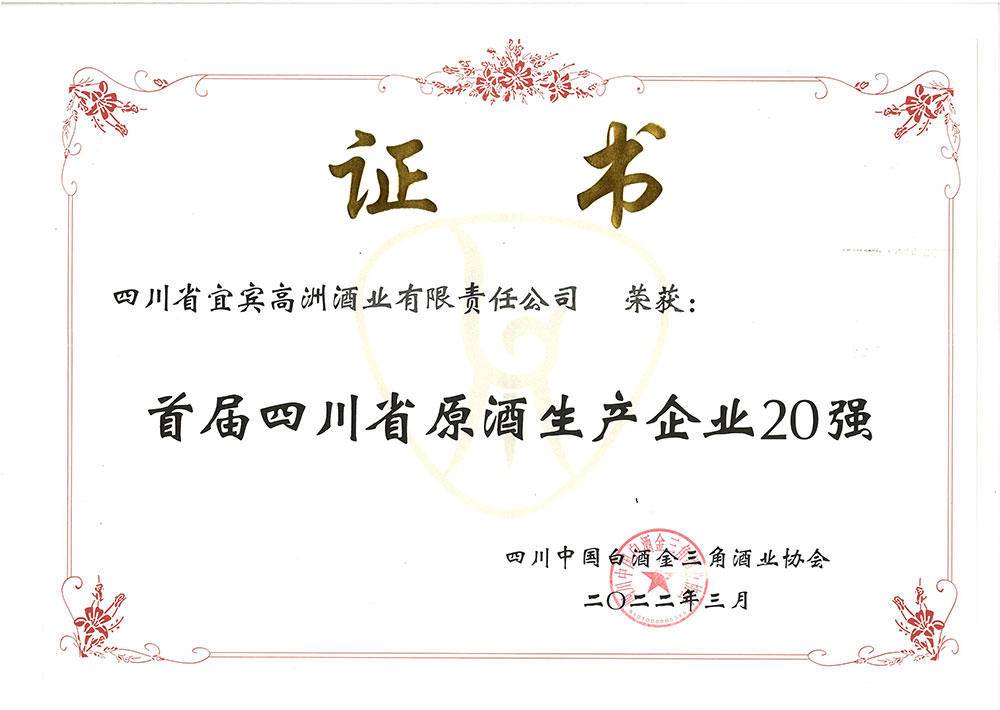 2022-高洲酒业获首届四川省原酒生产企业20强