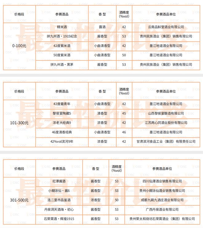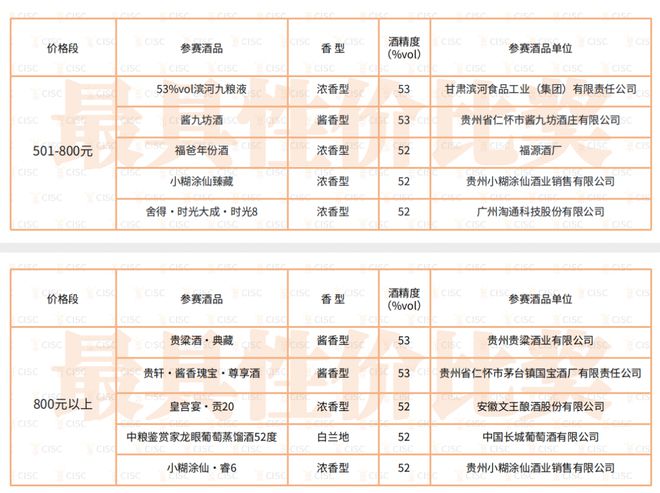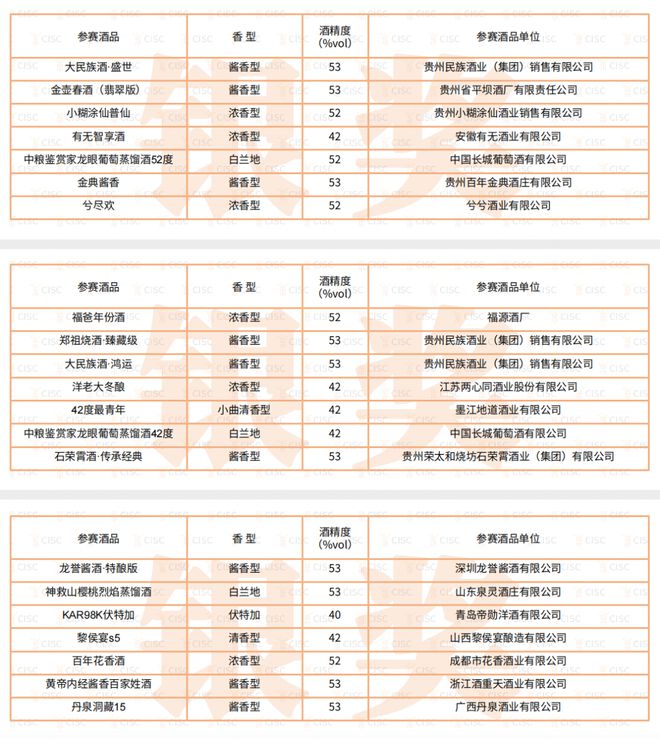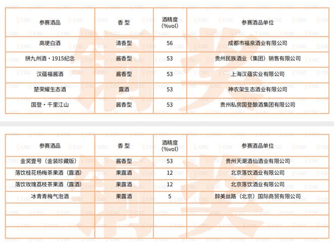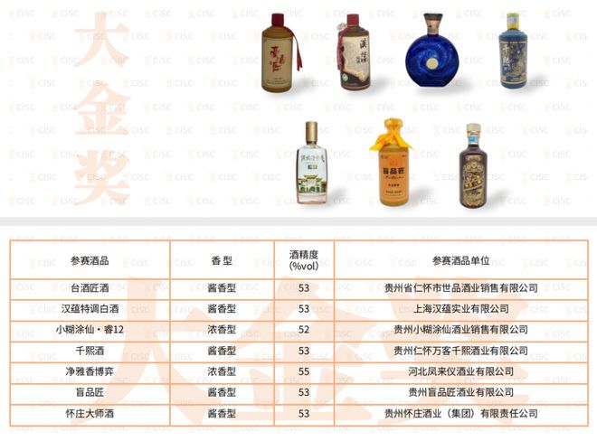 经过层层盲样处理和大赛评委两天的现场评审,文中酱酒·成都国际烈性酒大奖赛最终诞生154款品质奖(大金奖、金奖、银奖、铜奖)、25款最具性价比奖及39款最具人气奖,现公示如下:
