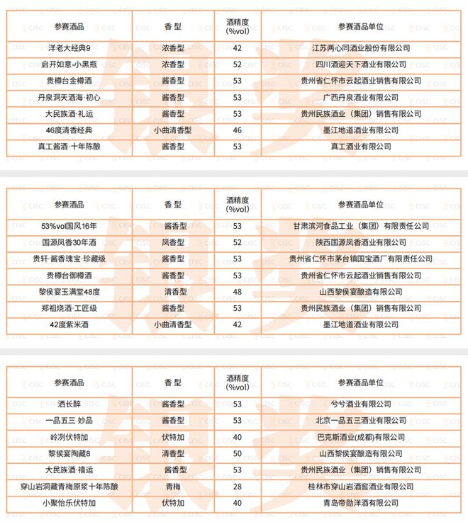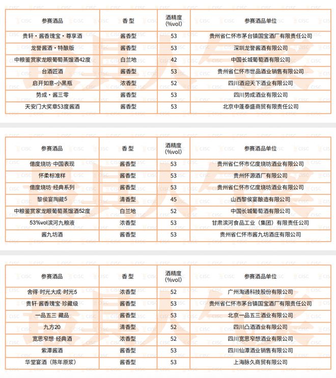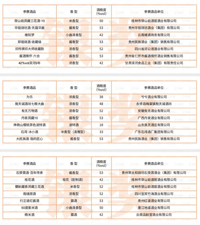 本次大赛共计389款参赛酒品,包含白酒、露酒及其他烈酒,白酒中以酱香型、浓香型及清香型为主。根据酒样实际情况,在中国标准化研究院食品感官分析实验室的指导下,组委会参照《白酒感官品评导则》与《白酒感官品评术语》制定了大赛专用《白酒评价标准》与《露酒评价标准》,分别从酒品的外观、香气、口味、口感、风格多个维度进行评价。