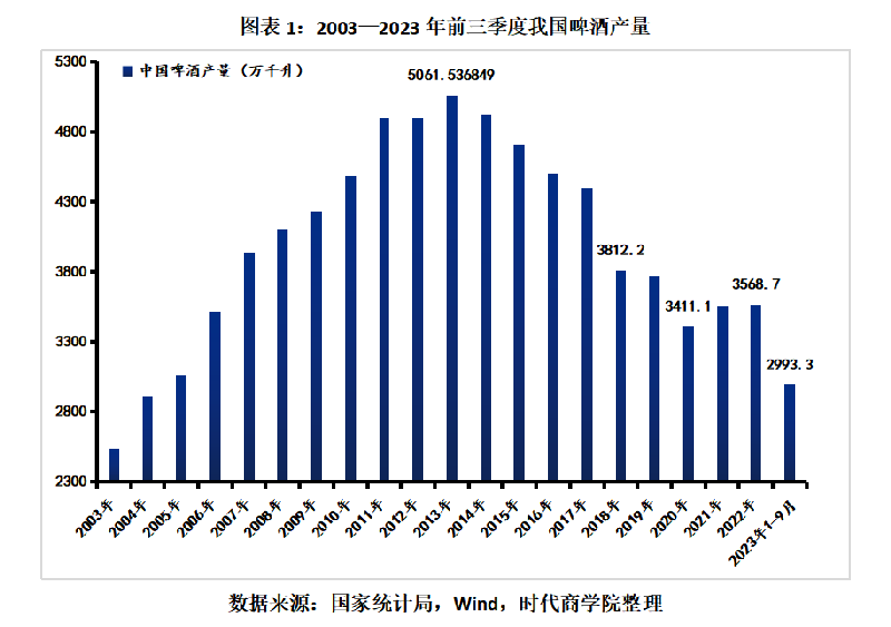 2023年1—9月,我国啤酒产量为2993.30万千升,同比增长1.54%,产量达到了2019年同期的95.96%,已基本接近疫情前水平。