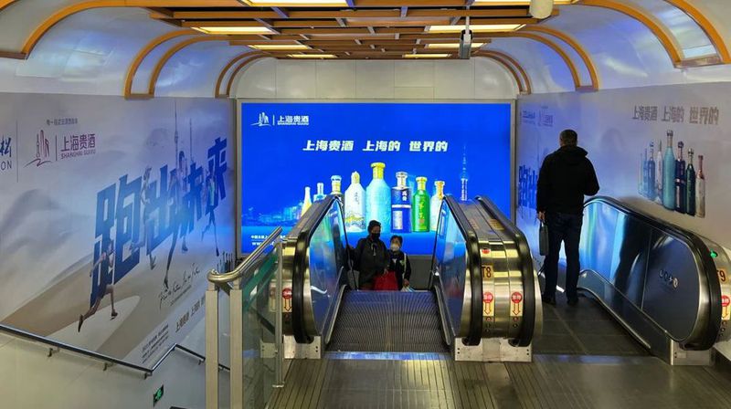 在开跑前,上海贵酒的多场景户外广告也迅速覆盖2023上海马拉松比赛沿线及重要交通枢纽,并持续霸屏了上海体育馆站、新天地站、南京西站、静安寺站等地铁站点,公交、出租车等户外媒体,以及陆家嘴地铁站TEAMLAB LED巨幕核心地标。借这一轮全城霸屏模式,上海贵酒深度触达了目标消费群体。