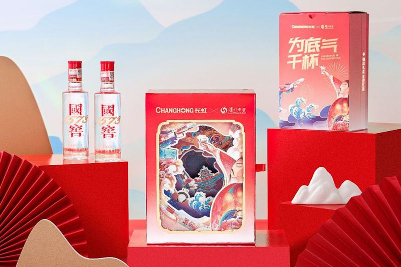 今年6月23日,长虹和泸州老窖两大四川国货品牌强强联合,在四川绵阳长虹国际城智慧家居体馆举行联名官宣活动,正式发布名为“为底气干杯”的联名小酒礼盒,开启首次联名合作。