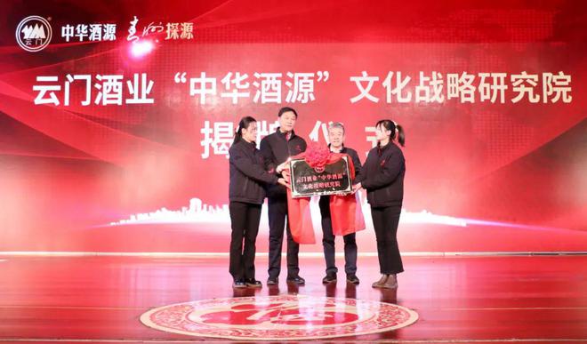 会上,中国酒业协会名誉理事长王延才和云门酒业集团党委书记、董事长汲英民,共同为“中华酒源”文化战略研究院揭牌。
