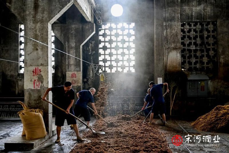 宋河有1万多条固态发酵窖池。其中有数百条世代相传的玄泥古窖,其窖泥外黑内红细腻温润,极富生命活力。而宋河独创的功能窖泥,窖池里活跃着1000多种有益微生物群落,孕育出奇妙的呈香呈味物质。“在车间里有一群看不见的酿酒工,它们就是最勤劳敬业的微生物,微生物繁殖的越好,酿出的酒越好、越香”。