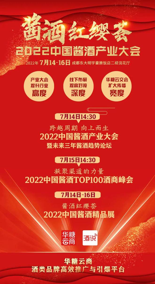 其中,酱酒产业大会上,将针对2022年酱酒进入高质量发展为特征的中场和优化年,酱酒要解决哪些发展命题展开探讨,届时,经济学家、营销实战专家、流量酱酒企业家等将带来答案。