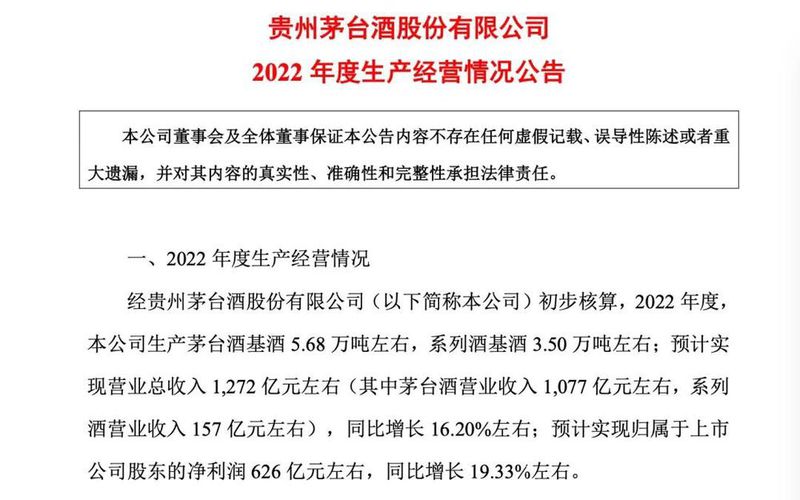 茅台依然处于领跑地位。2022年,茅台预计实现营业总收入1272亿元左右,同比增长16.2%左右。其中茅台酒营业收入约1077亿左右,系列酒营业收入157亿元左右。预计实现归属于上市公司股东的净利润为626亿元左右,同比增长19.33%。