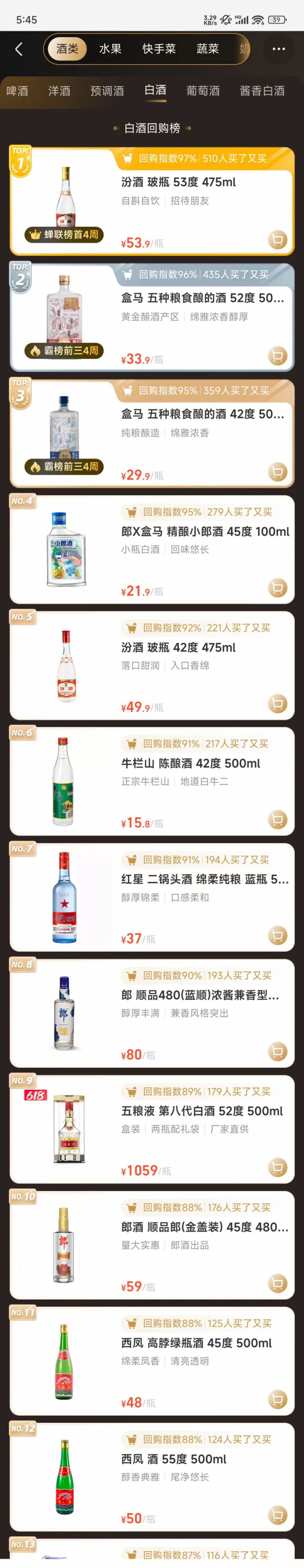 在成都市区的某盒马门店,记者发现其自有品牌白酒与顺品郎、玻汾等摆放在同一区域,都是面向大众消费的口碑口粮酒。“没有进行特别促销,都是顾客自己选购。”超市工作人员告诉记者。