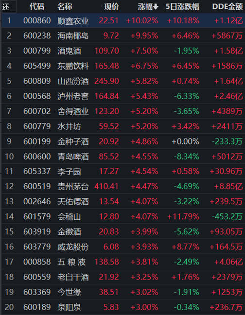 从早盘表现强势的饮料制造行业看,截至11月1日11:30,该行业交易中的47只个股有46只上涨,占比97.87%,其中8只涨幅超5%。从资金流向看,该行业今天上午大单资金净流入额达22.73亿元,居行业第2位。