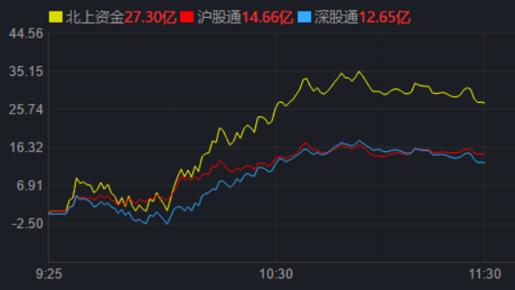 从资金面来看,11月1日上午,北向资金净买入金额达27.30亿元。