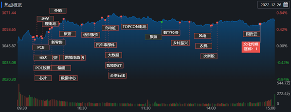 12月26日,A股市场高开高走。三大指数中深强沪弱格局明显,创业板指表现最强,A股成交额略有增长,但仍在6000亿元附近。业内人士普遍认为,随着悲观情绪冲击的消退,中长期向上动能和空间比较突出。
