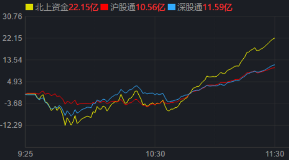从资金面来看,2月2日上午,北上资金净买入金额达22.15亿元,其中,沪股通净买入10.56亿元,深股通净买入11.59亿元。