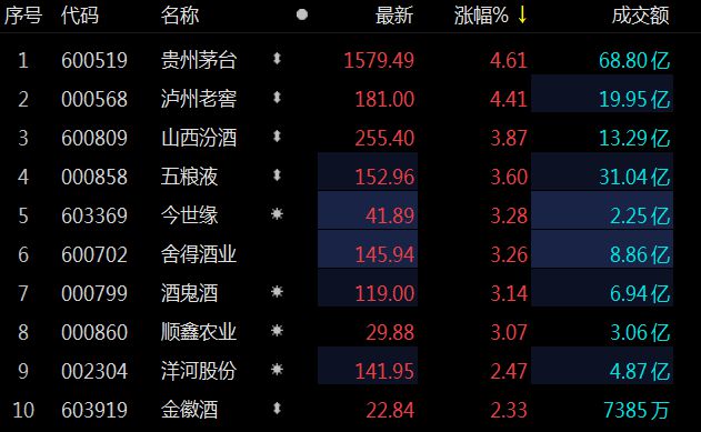 白酒股震荡上行 贵州茅台涨逾4%2022年11月29日上证报中国证券网讯11月29日,白酒股震荡上行,截至11:14,泸州老窖、贵州茅台盘中涨逾4%,山西汾酒、五粮液等跟涨。数据来源:Choice金融终端