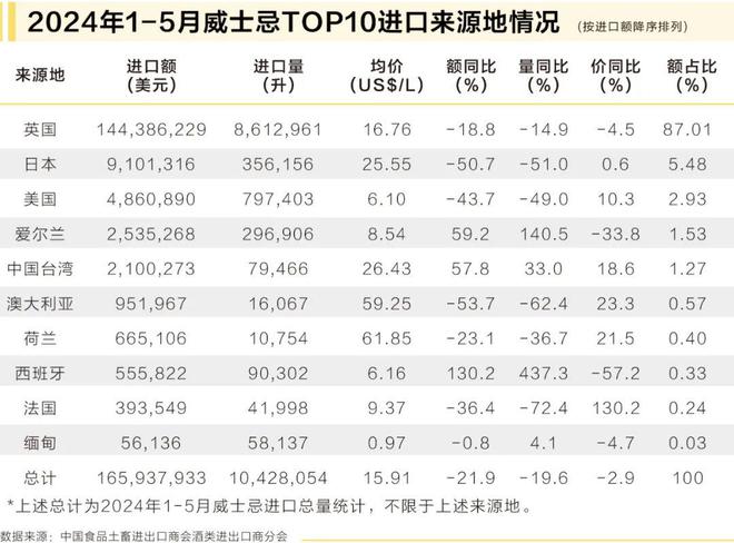 尽管如此,一个值得关注的现象是,即便在进口量和进口额双双走低的情况下,这些威士忌的均价却出现了同比上涨,这背后也反映出市场的调节与平衡能力。