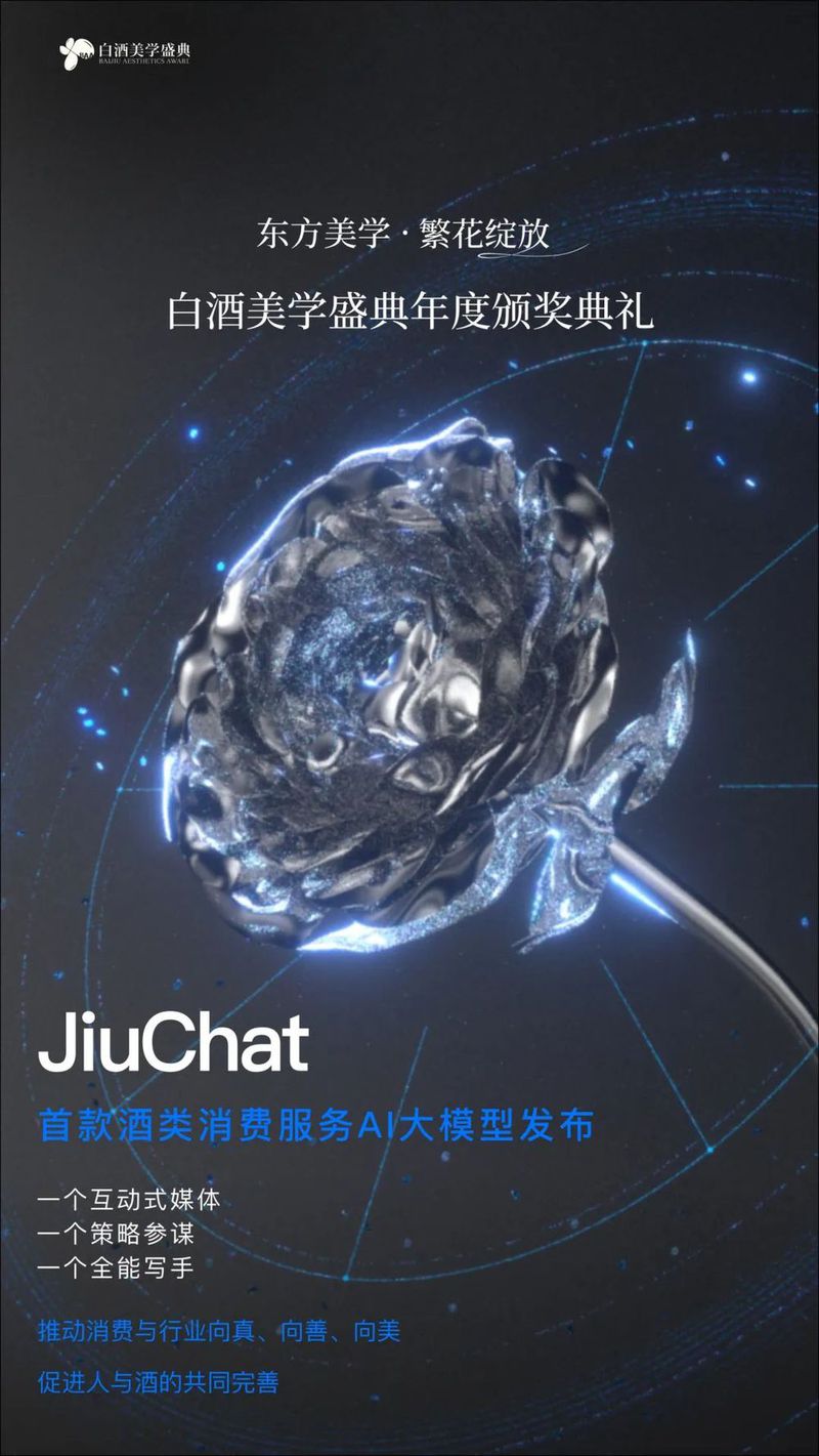 JiuChat选择在白酒美学盛典发布季首次亮相,缘于两者在推动消费与行业向真、向善、向美目标的完美一致。我们希望与业内同仁一道,期以新工具赋能新时代,助力行业持续向好发展。