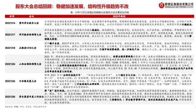 2023年是贵州茅台“持续发展”年;是五粮液 “稳中求进”年;是洋河股份(行情002304,诊股)“营销转型”年;是山西汾酒“品牌战略全面落地”年;是今世缘(行情603369,诊股)“百亿目标”年……