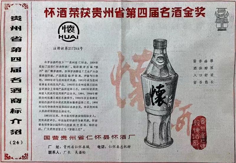 1951年,怀酒建厂,是贵州第一批国营酒厂。1954年初改名为国营仁怀县酒厂,1973年试制曲窖酒,聘请酱酒一代宗师李兴发指导工艺生产。