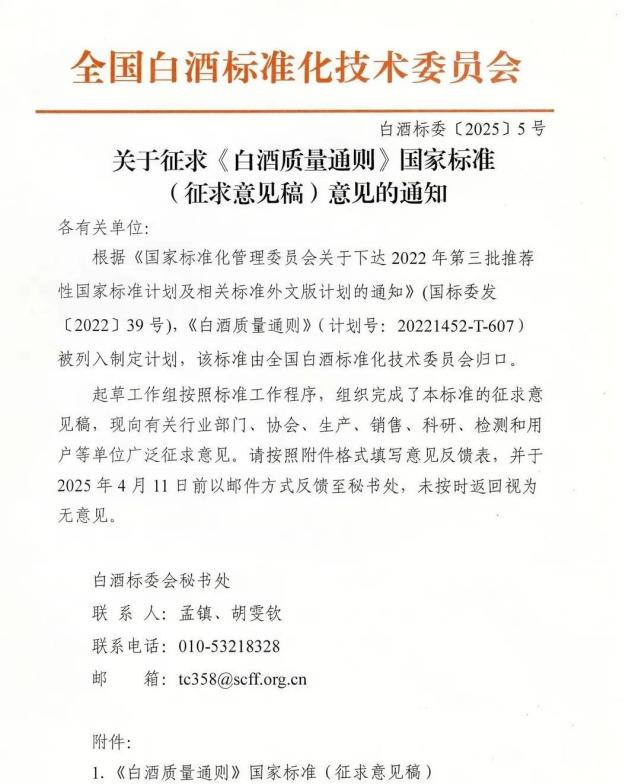 日前,全国白酒标准化技术委员会发布了《白酒质量通则》国家标准(征求意见稿)。