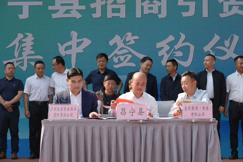 △ 泸州老窖养生酒业荣誉董事长付全贵代表公司与昌宁县人民政府签订战略合作协议