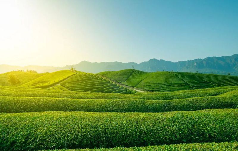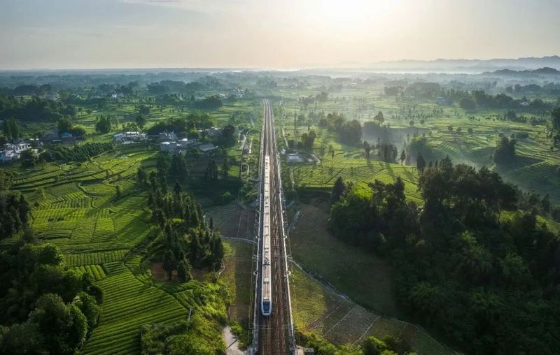 ▲四川省雅安市一处茶园,高铁驶过茶山。茶业的繁荣也促进了四川经济的发展
