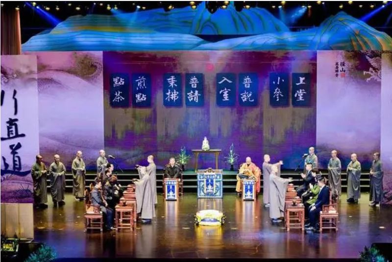 ▲杭州市余杭区径山镇举行主题活动庆祝申遗成功,舞台演绎径山茶宴