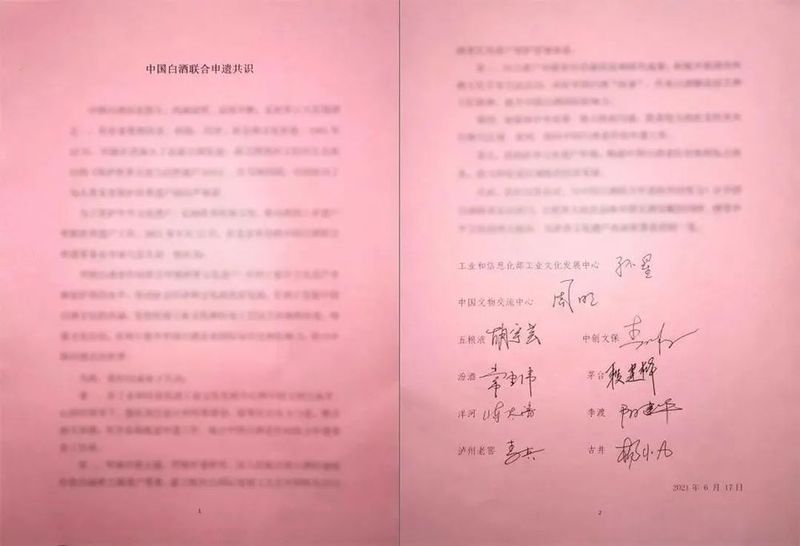 2021年6月17日,在工业和信息化部工业文化发展中心与中国文物交流中心的领导下,泸州老窖与贵州茅台、宜宾五粮液、山西杏花村汾酒、江苏洋河、安徽古井贡、江西李渡7家单位建立联合“申遗”项目组,并共同签署了《中国白酒联合申遗共识》。