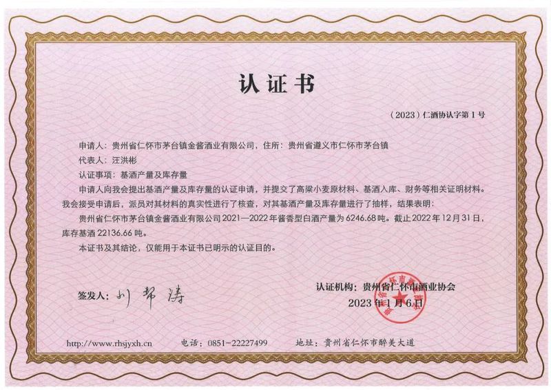 作为每届金酱窖藏节的重要环节,贵州省仁怀市酒业协会对公司基酒产量及库存量再次进行了官方认证。