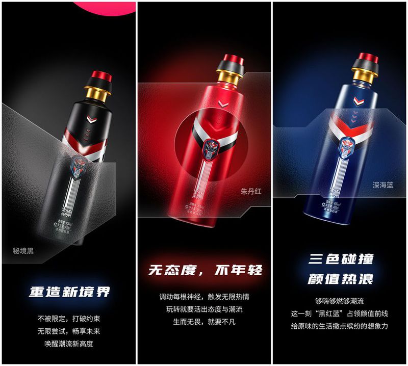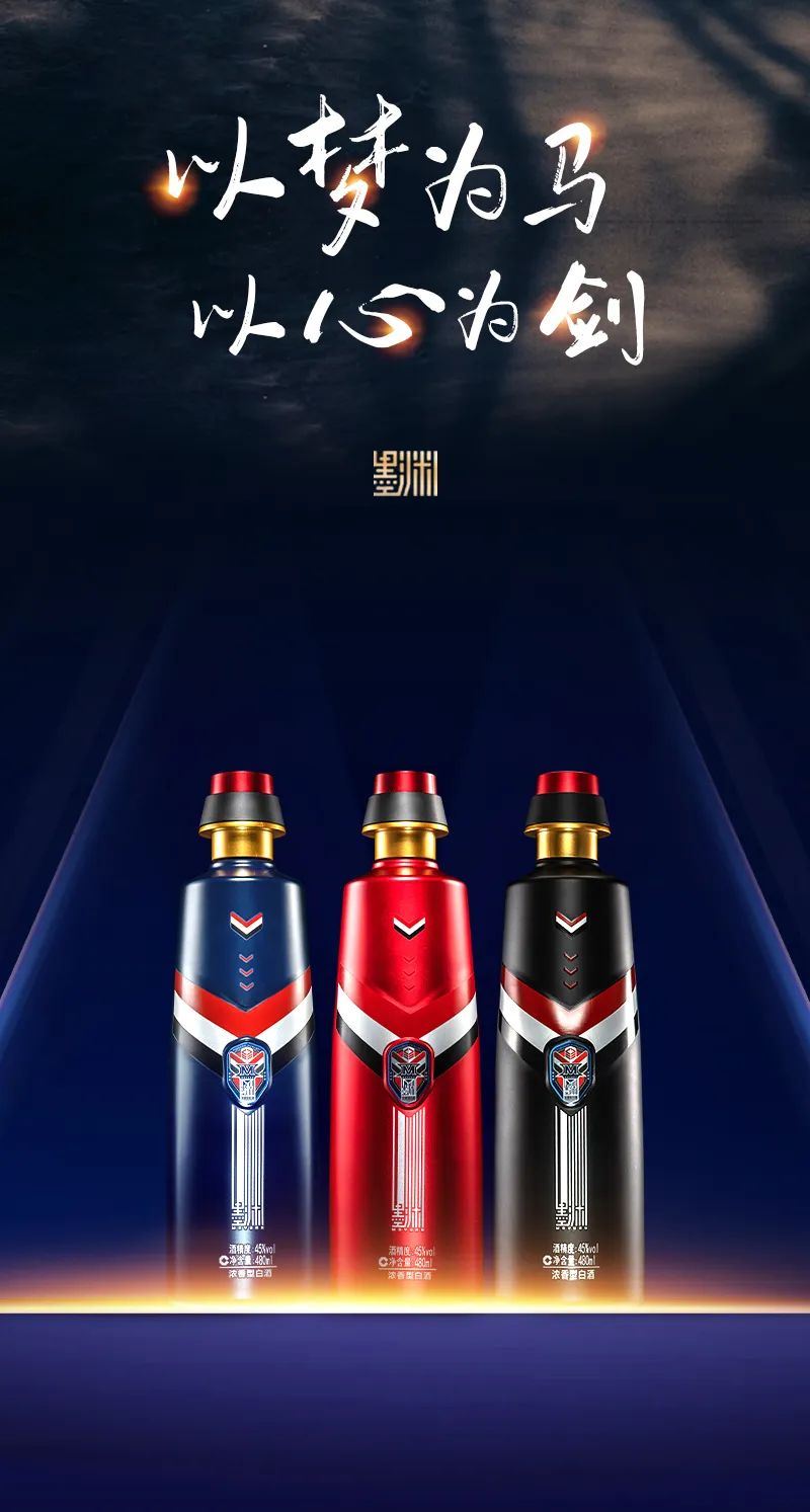 如此背景下,丰谷酒业公司一举打破中国白酒瓶型设计和色彩运用的传统思维模式, 率先以黑色为主色调,红、蓝相兼,多色彩表达、多元素运用,创新性地推出了时尚光瓶产品丰谷墨渊2.0 ,重新定义高线光瓶新时代。