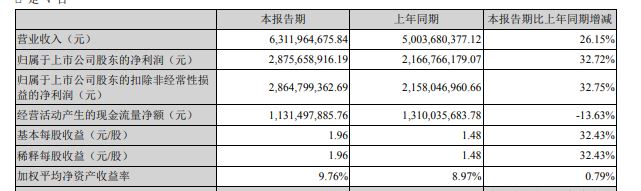 4月28日下午,同期发布的泸州老窖2022年第一季度报显示, 泸州老窖在2022年一季度实现营业收入63.12亿元,同比增长26.15%;实现净利润28.76亿元,同比增长32.72% 。为2022年目标的完成开了一个好头。