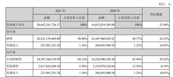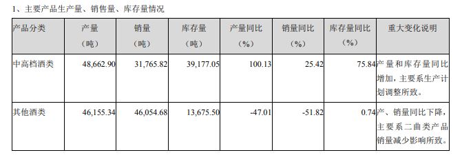 年报中还显示, 中高档酒的产量和库存同比增加,主要系生产计划调整所致 。