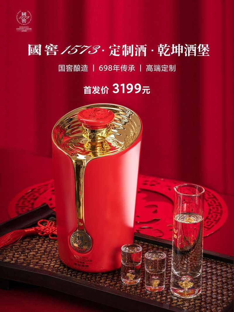 “国窖1573定制酒·乾坤酒堡”,邀五洲宾朋,承文化之精,敬乾坤朗朗!此次“国窖1573定制酒·乾坤酒堡”在京东、天猫 开启的首发预售,以3199元/瓶(市场价4999元/瓶)尊享价回馈爱酒人士,并有豪礼相送!据悉,首发活动结束后,该产品价格将恢复4999元/瓶。
