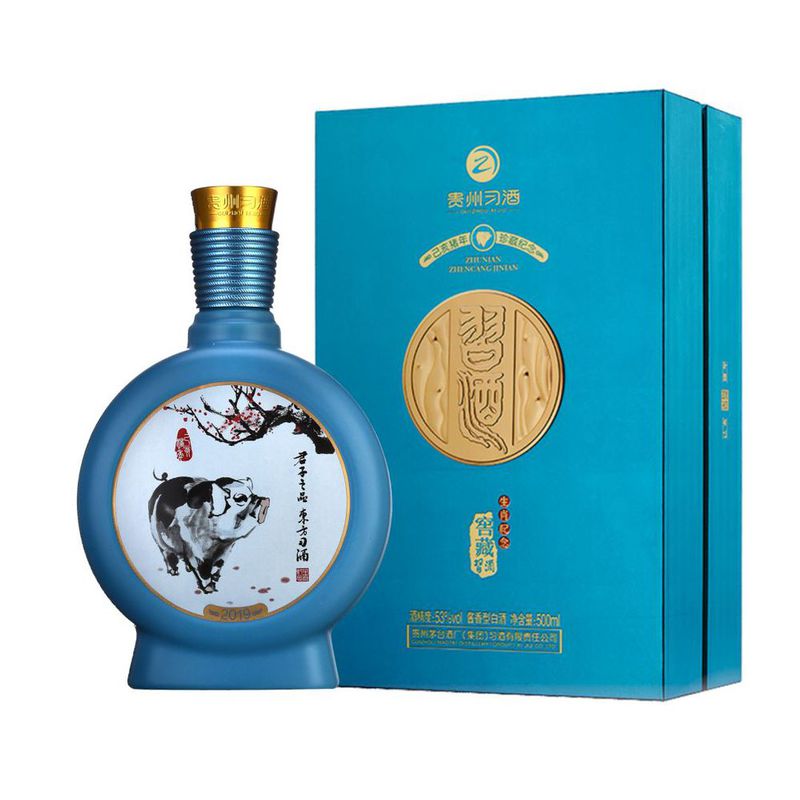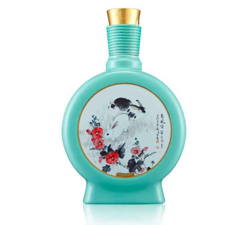 兔年生肖酒则以清新淡雅的天青色为主色调,与金色瓶盖、习酒logo相得益彰。同样沿用习酒经典鼓型瓶,生肖酒强化了习酒的品牌符号。包装上的国画《惠风习习》,由中国国家一级美术师刘国志所作。灵活机敏的花间双兔,自然超脱、温文尔雅,这使得兔年生肖酒充满了独特的中国韵味与艺术表现力。