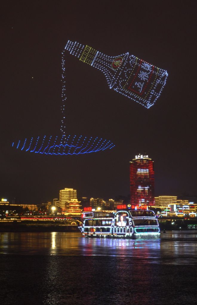 2月3日,五粮液长江三城主题无人机秀最后一站来到宜宾。晚上8时许,近2000架无人机腾空而起,起落交错的队形、变幻绚丽的灯光,都幻化成璀璨星河。以天为幕、以城为景,五粮液用一场视觉科技盛宴点燃了这座城市的热情。
