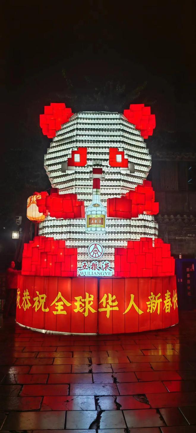 “观看这个灯会再一次被五粮液圈粉,一直觉得五粮液是高端大气的代名词,没想到和熊猫结合后会这么可爱,简直戳中我的心。特别是在宽窄巷子东广场的5.5米巨型‘大熊猫’,用了很多五粮液酒瓶堆砌而成,配上灯光简直太惊艳了,我们一家人拍了不少照片。”成都市民赵女士对微酒说道。