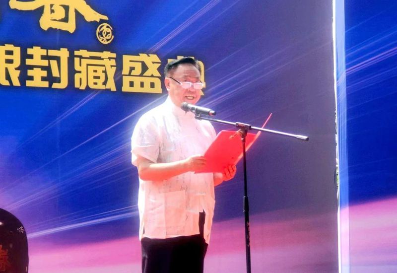 原宜昌市建委副主任、现宜昌市老科技工作者协会会长李学良诵读封坛颂文:“…楚园有春,酒业荣光;匠心打造,技压群芳。做酒做人,独有担当;淡雅天成,楚酒榜样。楚园春不愧为楚酒典范,驰名品牌定会声名远扬… ”