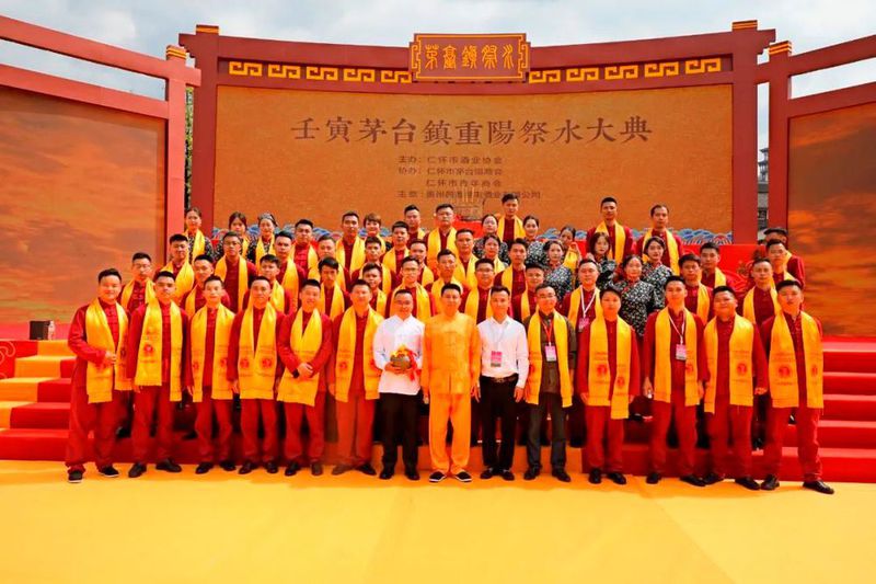 仁怀市人大常委会主任杨英,市政协主席王强,市委常委、市政府党组成员、仁怀经开区(园区)党工委书记刘进,市委常委、茅台镇党委书记王远强,市酒业协会会长、中国酿酒大师吕云怀,遵义市生态环境保护协会会长陶秀莲,市酒业协会常务副会长兼秘书长刘帮涛,以及中国酱酒核心产区的百家参祭企业代表参加了祭祀大典。作为中国酱香白酒核心产区(仁怀)带有符号性质的酒文化活动,“茅台镇重阳祭水大典”不仅标志着仁怀酱香白酒产区已进入新一年度酿酒生产周期,多年来,更是已经成为酱酒产业乃至白酒行业的活化文化遗产典范。