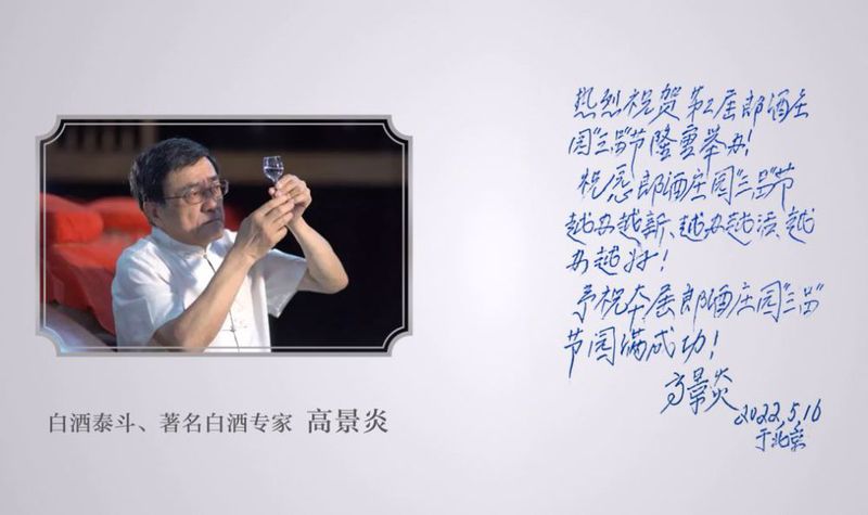 △白酒泰斗、著名白酒专家高景炎为「第二届郎酒庄园三品节」手写祝福