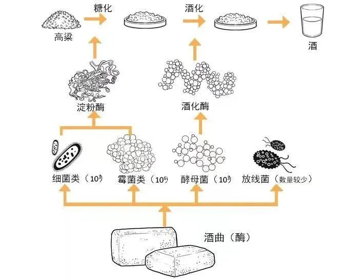 白酒的酿造,其实说来简单,即糖化和酒化,一是将粮谷中的淀粉转化为糖,一是将水解后的糖类发酵为酒。