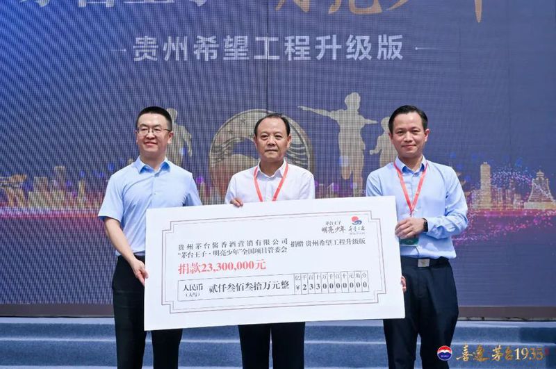 活动现场,“茅台王子·明亮少年”贵州希望工程升级版捐赠仪式同时举行,在多方代表的见证下,茅台酱香酒公司再次点亮公益之光。