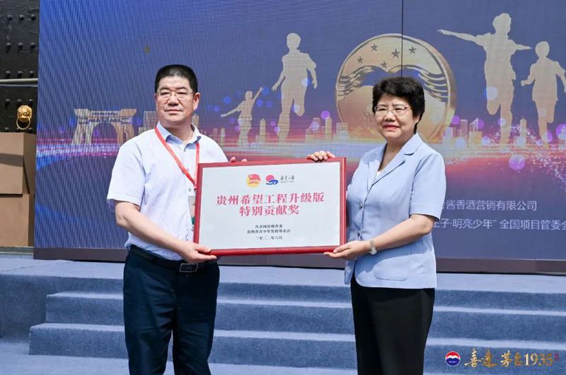 如今,为了让更多的乡村孩子走出大山小城,贵州茅台酱香酒营销有限公司、“茅台王子·明亮少年”全国项目管委会代表全体茅台王子酒经销商再次向贵州希望工程升级版捐赠 2330万元。现场省政协副主席罗宁向贵州茅台酱香酒营销有限公司、“茅台王子·明亮少年”全国项目管委会颁发贵州希望工程升级版特别贡献奖奖牌。