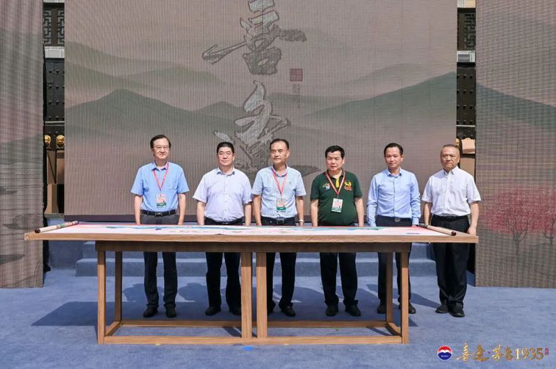 仪式上,一幅喜逢茅台1935的画卷徐徐展开,一边是茅台上河图,一边是美酒中国图,茅台山水与黔山贵水隔水呼应、相得益彰。这不仅是酒与神州地理的喜逢,也是酒与岁月历史的对话。