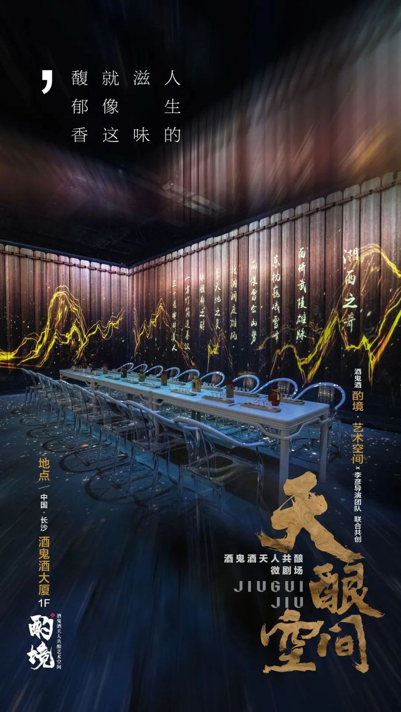 其二,是新的体验表达。如果说新的品牌表达是将酒鬼酒的天人共酿之妙做平面展示,那10月末在长沙酒鬼酒大厦正式落成的酌境·艺术空间就是作为一个线下体验空间,以“沉浸式艺术表演+光影酒体品鉴”的方式将天人之间的微妙联系变得可视化。