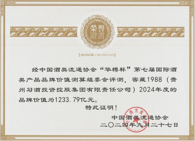首先,是品牌影响力的持续进阶。9月27日,“华樽杯”第十六届中国酒业200品牌价值发布会召开,期间揭晓了中国酒业200品牌价值暨第七届全球酒类产品100榜单。其中 ,习酒·窖藏1988的品牌价值为1233.79亿元,再创历史新高,这一成就彰显了其市场地位的稳固提升。