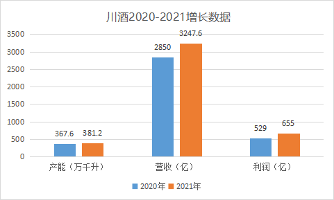 2021年,四川全省294家规上白酒企业累计生产白酒381.2万千升,同比增加3.7%;完成营业收入3247.6亿元,同比增长13.8%;实现利润655亿元,同比增长23.7%。在如此大体量的前提下,川酒依旧保持了产、销、利的全部正增长。